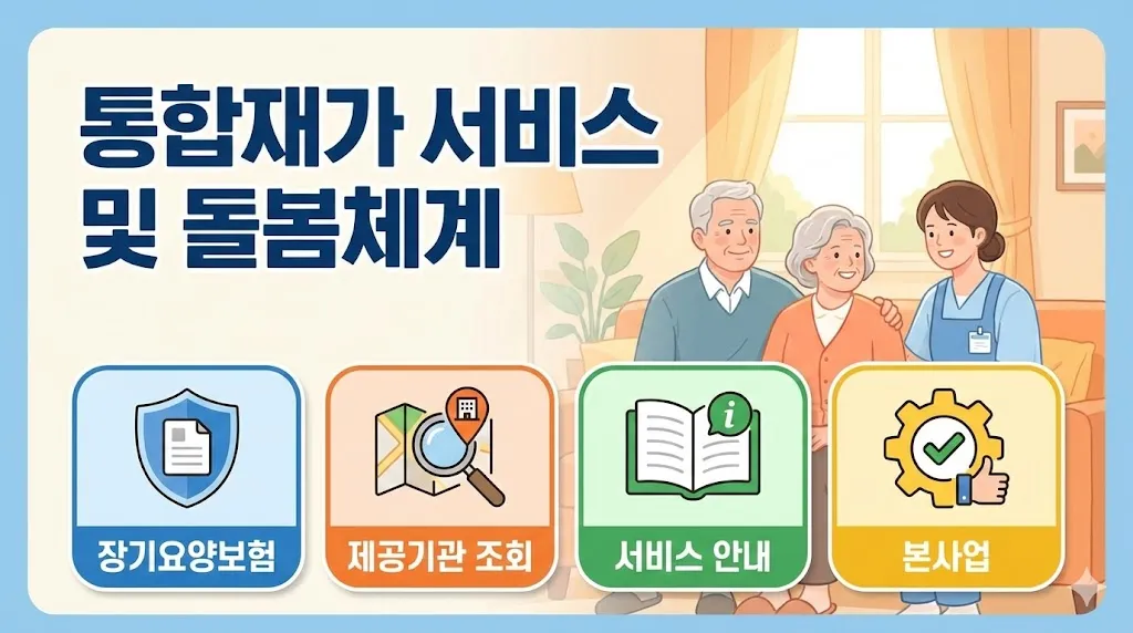 통합재가 서비스 및 돌봄체계에 대해 알아보겠습니다. 어르신이 요양시설에 입소하지 않고도 살던 집에서 다양한 돌봄 서비스를 받을 수 있다면 얼마나 좋을까요? 이 글에서는 통합재가서비스의 개념, 장기요양보험 제도, 제공기관 조회 방법, 서비스 안내, 2026년 본사업 추진현황까지 상세히 정리했습니다.